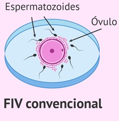 - FIV convencional: Los ovocitos se dejan incubando con el semen previamente capacitado, simulando el proceso de fecundación natural.